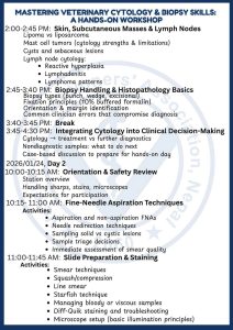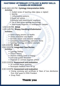 कार्यक्रमको समय बिहान १० बजेदेखि दिउँसो ४ बजेसम्म तोकिएको छ भने सहभागी संख्या २० जनामा सीमित गरिएको छ। कार्यशालाको दर्ता शुल्क रु. ७,००० तोकिएको छ।VPAN का अनुसार, यो कार्यक्रम विशेषगरी व्यवहारिक ज्ञान, केस–आधारित सिकाइ र डायग्नोस्टिक सीप अभिवृद्धि गर्ने उद्देश्यले आयोजना गरिएको हो, जसबाट फ्रेशर पशु चिकित्सक तथा विद्यार्थीहरू प्रत्यक्ष रूपमा लाभान्वित हुने अपेक्षा गरिएको छ।